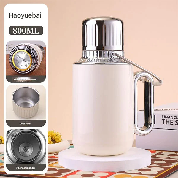 Thành trong của bình cách nhiệt bằng thép không gỉ hai lớp được làm bằng vật liệu thép không gỉ và được trang bị nắp chai bằng nhựa không chứa BPA.